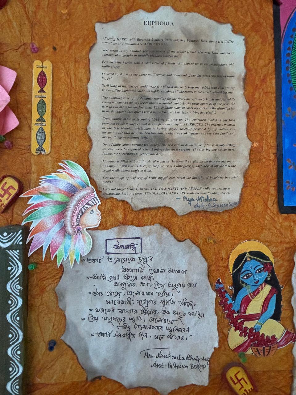 Wall magazine "THE MIRROR" has been a combined effort of faculty members, staff and students. The wall magazine aims to get the active involvement of the students to develop their skills outside the classroom. The college releases a wall magazine biannually and provides an opportunity to the students to show their talent through wallpaper on various topics. Students show their imagination and drawing skills. Wall magazine board is always full of the creative art of students and informative knowledge charts. At our institution student's imagination and creativity are nurtured and given wings to fly high. They create beautiful and meaningful pieces of literature and art to express their emotions which may be in the form of articles, pictures, paintings, and useful perspectives about various facets of life.